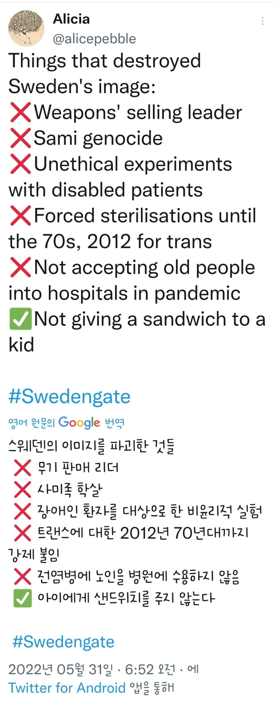 등등 스웨덴의 온갖 치부까지 끌려나와서 공론화 되는중